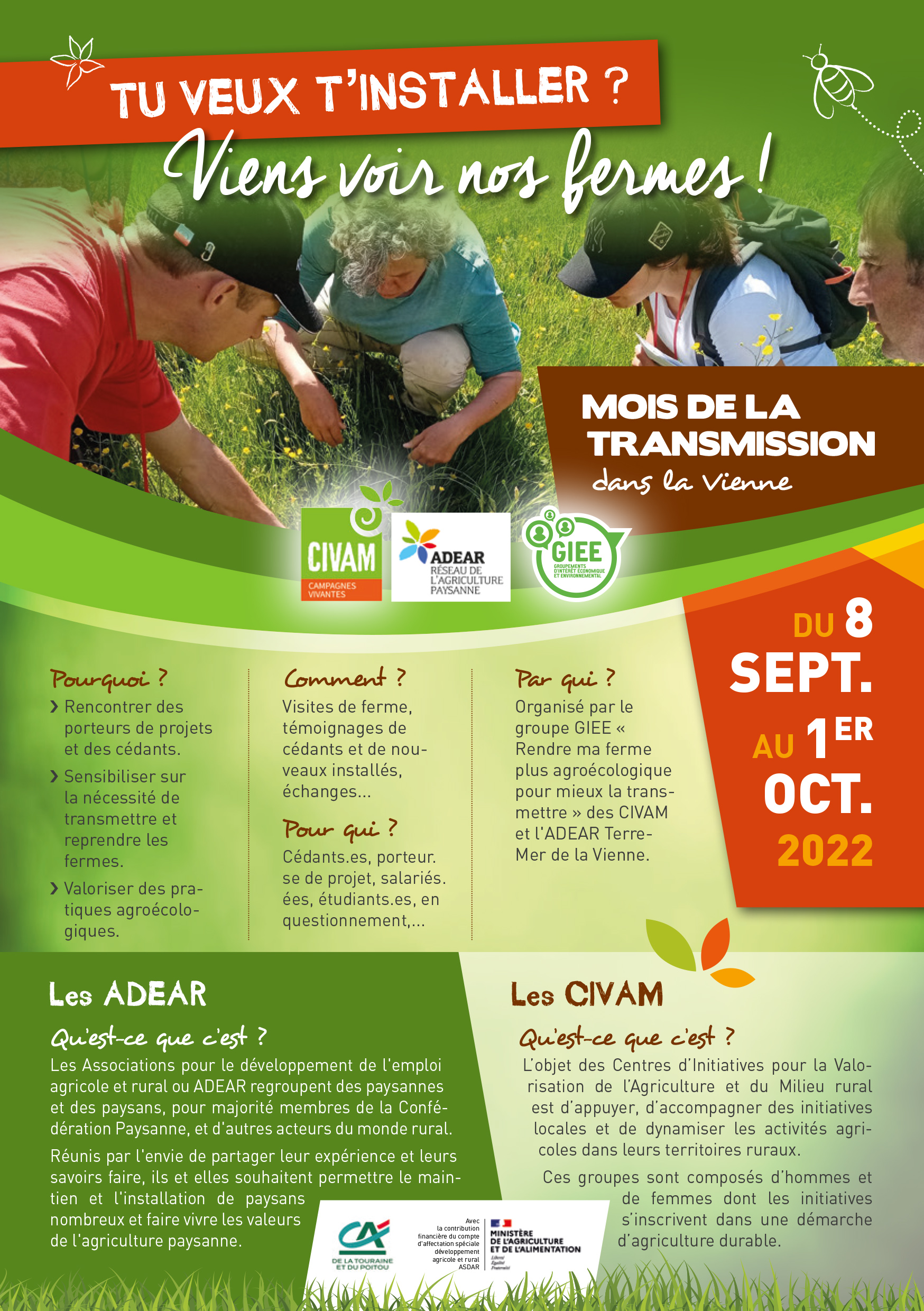 Les CIVAM de la Vienne et l’ADEAR Terre Mer de la Vienne organisent le Mois de la Transmission.