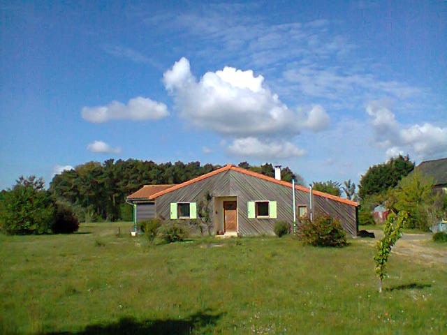 - 1 maison d’habitation bioclimatique de 154m2 en ossature bois avec grande pièce de vie, 4 chambres et 1 bureau, sanitaires, pompe à chaleur et chauffe-eau solaire (classe énergétique : C, GES : A)