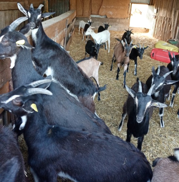 Il y a 46 chèvres dont : 25 Poitevines/3 Alpines/18 croisées Poitevine/Alpine ou Poitevine/Saanen