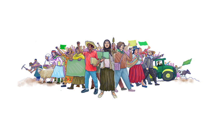 "Nous, paysan·nes, jeunes, femmes, hommes et diversités, migrant·es, travailleur·euses du monde rural, peuples autochtones et sans terres, nous tenons debout avec un espoir et une force renouvelés, une conscience accrue, un engagement indéfectible, une unité organisée et une détermination à affronter les crises multiformes. Nous poursuivons une lutte sans relâche contre les génocides, les guerres, les violations de la souveraineté des peuples, les expulsions de familles paysannes, la criminalisation et la persécution des paysan·nes et leaders sociaux, ainsi que l’extractivisme et les violations des droits paysans. Uni·es, nous protégeons notre Terre Mère contre l’emprise des multinationales de l’agrobusiness, des néocolonialistes, et des forces fascistes et militaires répressives." Via Campesina.